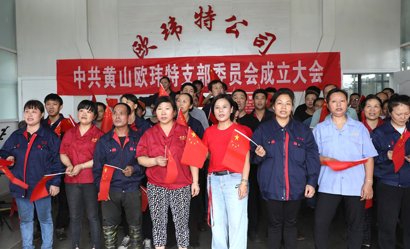 歐瑋特黨支部有3名黨員、5名入黨積極分子,成立後就進行了重溫入黨誓詞,聽黨史黨課,黨員和職工高唱《唱支山歌給黨聽》、《沒有共產黨就沒有新中國》,漁梁社區居民表演了《繡紅旗》。