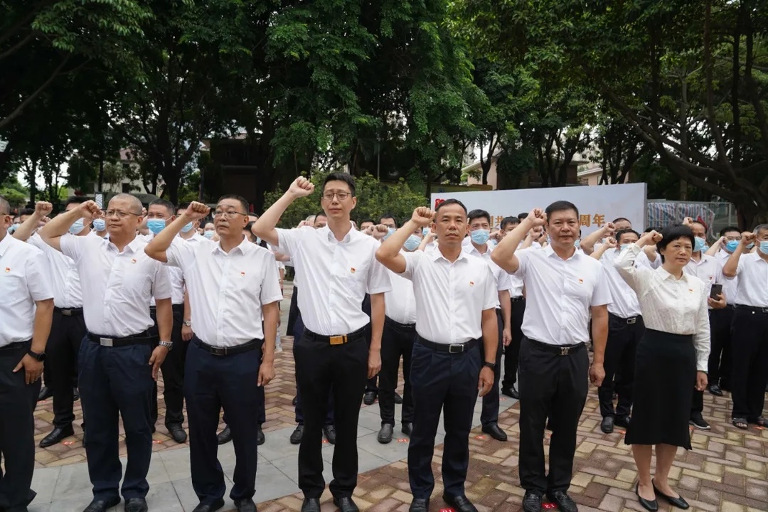 「我宣誓:我志願加入中國共產黨……」,當天咋黎壽康的帶領下,厚街黨員幹部在黨旗前重溫入黨誓詞,牢記初心使命。黎壽康表示,今年是中國共產黨成立100周年,在這個時間節點,重溫入黨誓詞意義非凡。