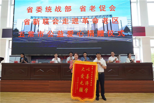 傳承紅色基因,賡續紅色血脈。6月29日,在喜迎中國共產黨成立100周年華誕之際,在黑龍江省委統戰部的帶領下,黑龍江省老區建設促進會及黑龍江省新的社會階層人士聯誼會(簡稱「黑龍江省新聯會」)共同走進革命老區五常市,開展「學黨史、悟思想、辦實事、開新局」主題愛心公益活動。黑龍江省新聯會向雅臣中學捐贈價值18萬的乒乓球枱、跑步機、動感單車、橢圓機、啞鈴組套等15項體育器材,雅臣中學向省新聯會回饋錦旗,共同譜寫了一曲紅心向黨,以善濟學,大愛無疆的時代讚歌。