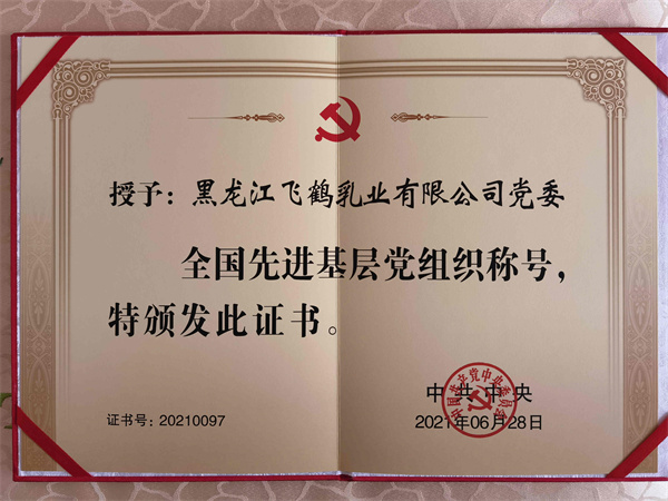 「這次能獲得『全國先進基層黨組織』的殊榮,既是對我們過去工作最好的褒獎,也是對未來發展最大的激勵。這份榮譽在手,更是一份重任在肩,我們飛鶴乳業必將進一步增強廣大黨員幹部的榮譽感、歸屬感、使命感,激勵廣大黨員幹部堅定初心,努力為中國寶寶、中國人民研製更高品質的乳製品,創造無愧於黨、不負人民的成績。」飛鶴乳業黨委書記朱天龍激動地表示。