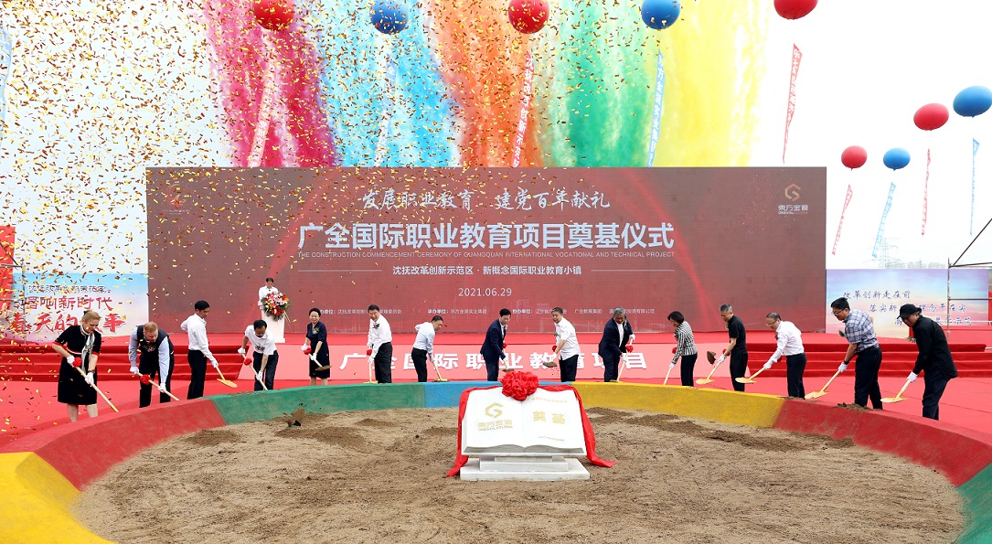 6月29日,瀋撫示範區新概念國際職業教育小鎮廣全國際職業教育項目奠基儀式順利舉行,該項目的開工建設是瀋撫示範區深入貫徹落實習近平總書記對職業教育工作作出的重要指示精神,加快發展職業教育的重要實踐。