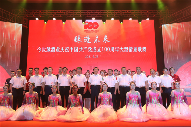 活動現場,慶祝中國共產黨成立100周年大型情景歌舞《釀造未來》濃情上演,節目共分為《特殊黨產》《艱苦創業》《鳳凰涅槃》《世紀放歌》《釀造未來》五個篇章,綜合運用多種藝術手段,生動展現今世緣黨費建廠的紅色歷史,奮力描繪高溝酒廠在艱苦創業中走向崛起的壯美畫卷,熱情謳歌今世緣在創新變革中實現精彩跨越,昂首闊步邁向酒緣大業新征程。(宋璟)