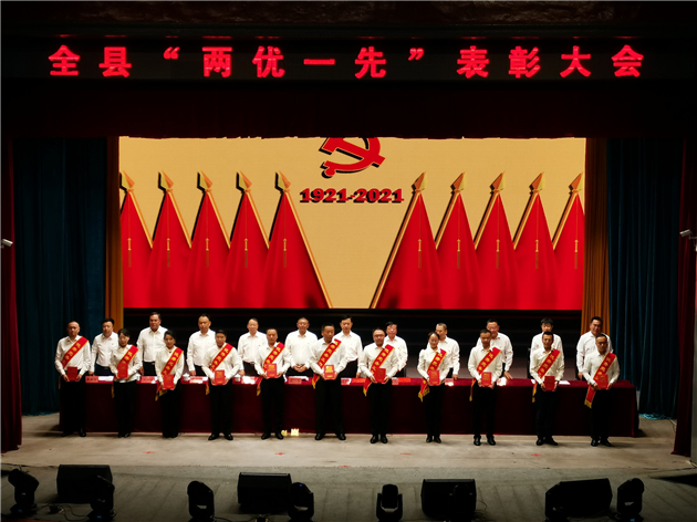 會議在雄壯的國歌聲中拉開帷幕,會上,縣委常委、組織部長梁宏宇宣讀了縣委表彰決定,與會領導為優秀共產黨員代表、優秀黨務工作者代表、先進基層黨組織代表進行了頒獎。會上授予拜泉鎮星火社區黨總支等64個基層黨組織「先進基層黨組織」稱號,授予張洪亮等165名同志「優秀共產黨員」稱號,授予楊旭軍等67名同志「優秀黨務工作者」稱號。