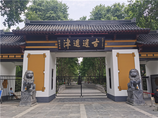 記者看到,公園南大門為三開間牌樓,黃牆斗拱,上懸匾額為清代狀元陸潤庠書寫的台閣體「古逍遙津」。該負責人還介紹,提升改造後逍遙津公園向城市敞開,拆牆透綠,對接步行街,呼應教弩台,成為公園向城市敞開的名片。