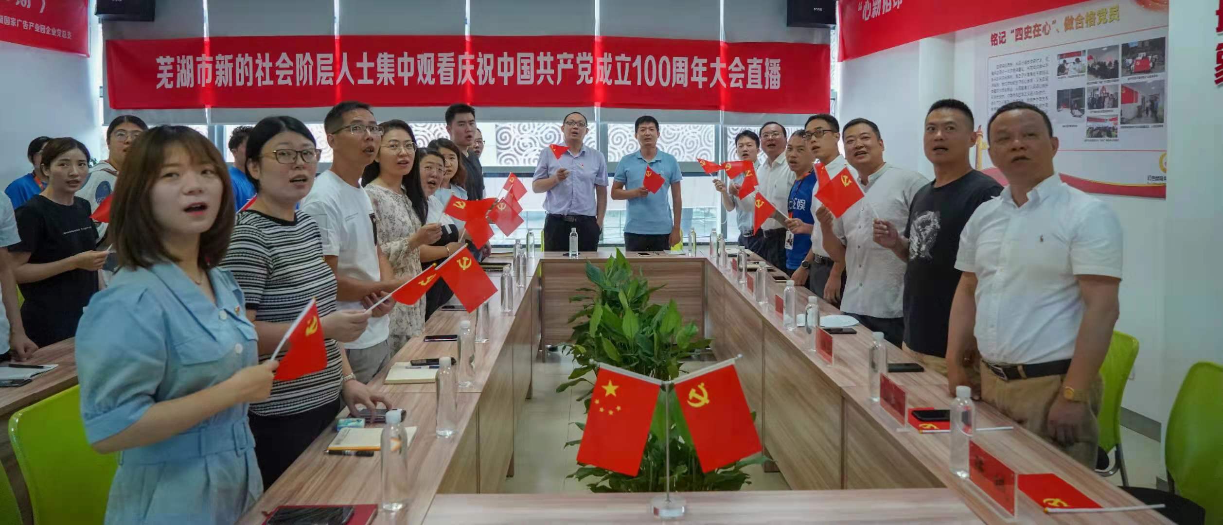 7月1日,慶祝中國共產黨成立100周年大會在北京天安門廣場隆重舉行。蕪湖市新的社會階層人士聯誼會組織50餘名新的社會階層代表人士齊聚一堂,共同收看慶祝大會現場直播。