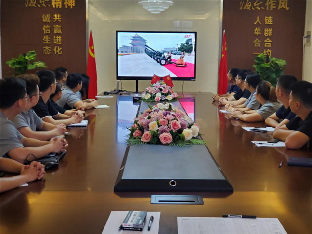位於合肥經開區臨湖社區的合肥海爾滾筒洗衣機有限公司黨支部組織員工集中收看慶祝大會直播