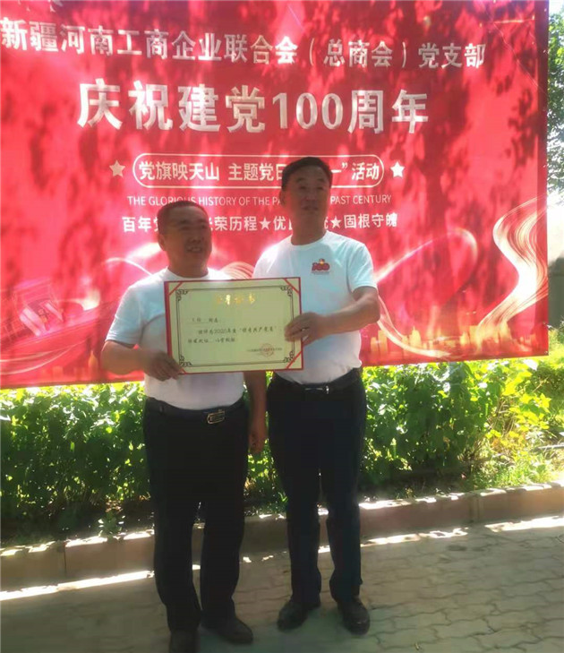 新疆河南工商企業聯合會(總商會)黨支部書記王偉與會長合影