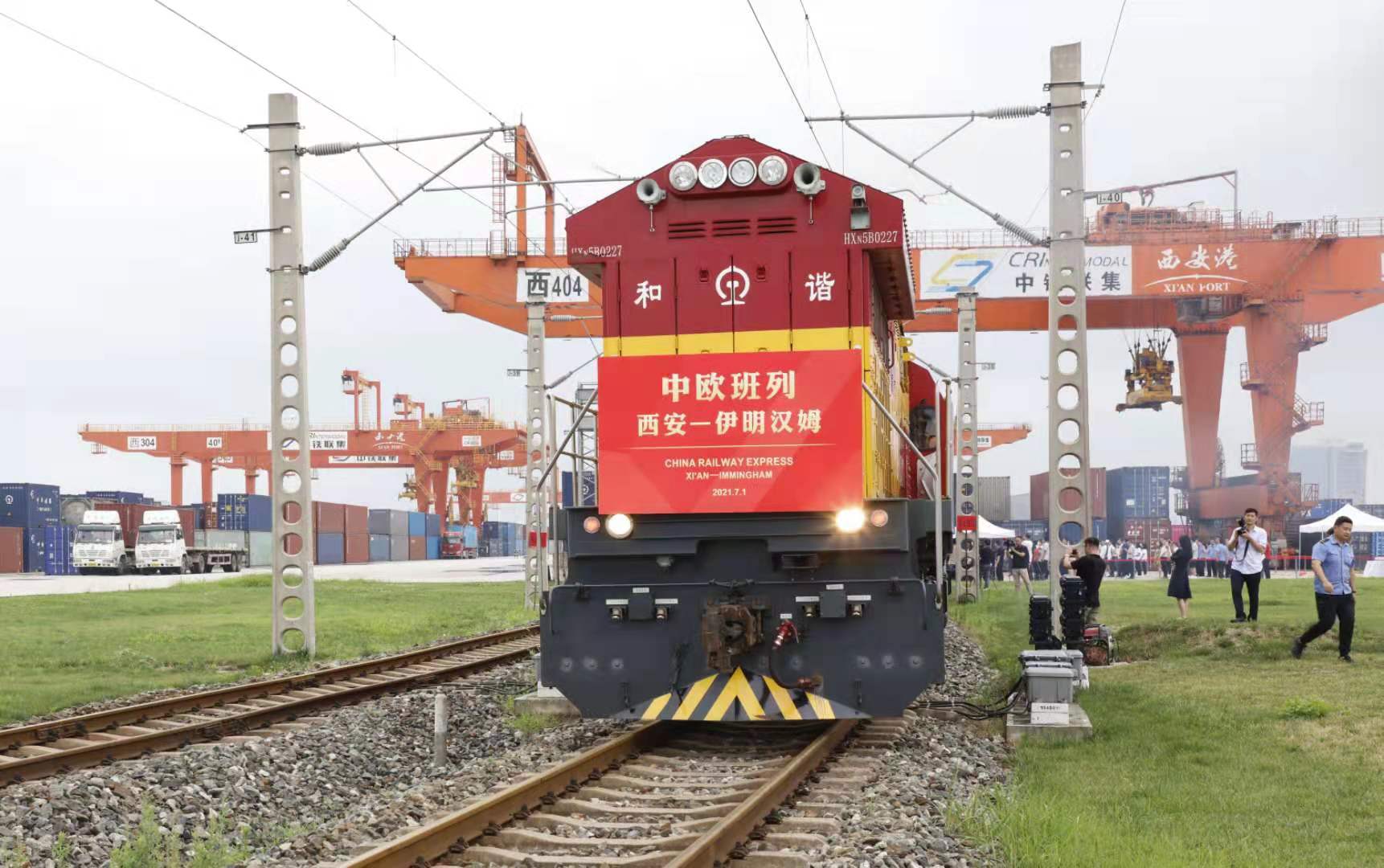 7月1日,滿載50個集裝箱服飾百貨、電子配件、家具家電等貨物的中歐班列長安號(西安–伊明漢姆)緩緩駛出西安國際港站,一路向西,奔向英國。中歐班列長安號(西安–伊明漢姆)的開行,將成為一條西安直通英國的「黃金幹線」。