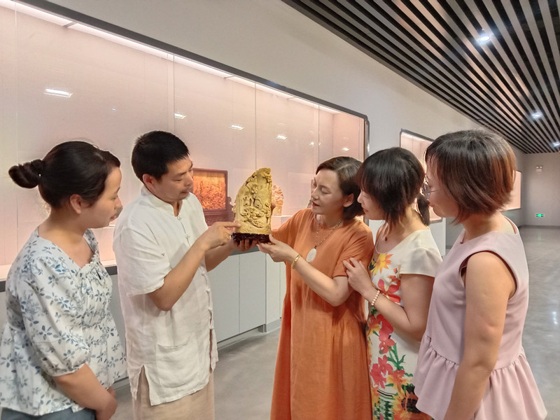 竹根雕山子擺件《星火燎原》,以兩個英雄故事為主題,利用黃山毛竹根,採用立體圓雕、高浮雕等多種的技法手工雕刻而成,展示了傳統徽派雕刻的精湛技藝和徽文化的獨特魅力。