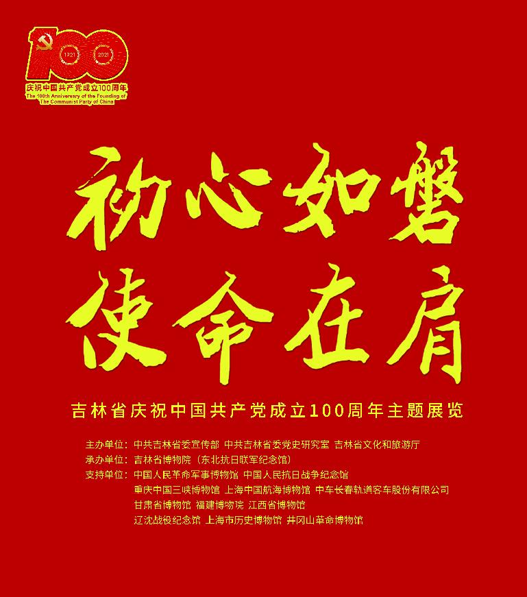 為隆重慶祝中國共產黨成立100周年,按照省委部署,由中共吉林省委宣傳部、中共吉林省委黨史研究室、吉林省文化和旅遊廳主辦,吉林省博物院(東北抗聯紀念館)承辦的「初心如磐使命在肩——吉林省慶祝中國共產黨成立100周年主題展覽」將於6月30日開始在吉林省博物院展出。
