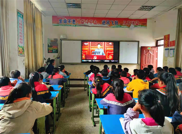 棉椏鎮小學900多名學生在教室收看慶祝中國共產黨成立100周年大會的盛況直播