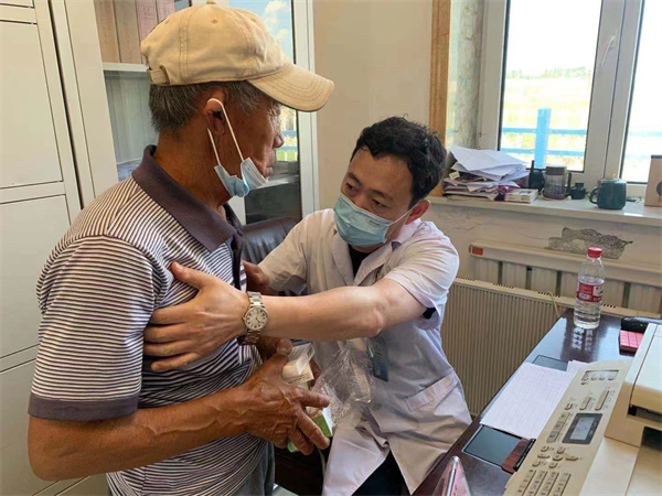當天,杜繼偉副院長還和醫療隊專家專程到三戶貧困戶家中入戶義診並送去了符合其慢性疾病的免費藥品。貧困戶劉大爺常年癱瘓在床,就診條件受限,百年市一院醫療隊為其解決就醫難的問題,讓村民們在炕頭上就能免費享受到三甲醫院的優質診療服務。
