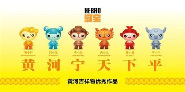 黃河吉祥物優秀作品是一組承載深厚文化底蘊和洋溢時代精神的動漫形象,組合名為「河寶」,凸顯保護黃河是事關中華民族偉大復興和永續發展的千秋大計。六個吉祥物分別取名「黃小軒」「河小洛」「寧小陶」「天小龍」「夏小鯉」「平小牛」,融合了黃帝文化、河洛文化、仰韶文化、中華龍文化、鯉魚吉祥文化以及鎮河鐵牛和三牛精神,囊括黃河流域最具代表性的文化遺產、自然生態和精神標識。六個可愛的好夥伴將作為弘揚黃河文化、講好「黃河故事」、傳播黃河精神的使者,向世界傳遞黃河流域生態保護和高質量發展的美好願景。