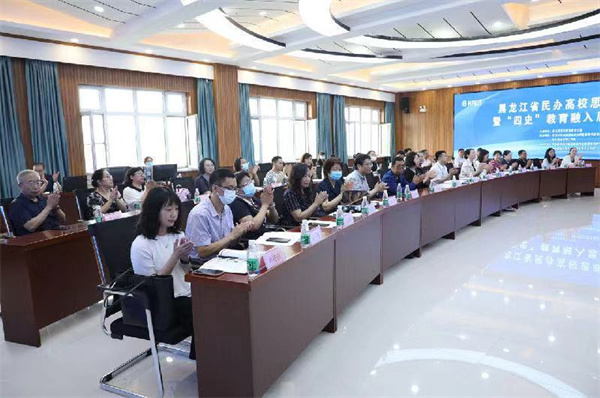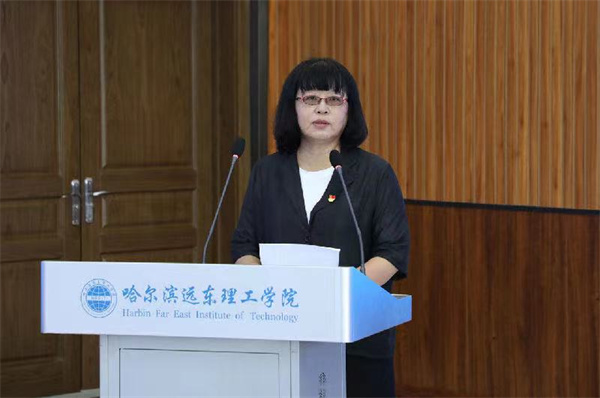 陳文斌在致辭中說到,7月1日,我們共同見證了百年夢圓的重大時刻,聆聽了習近平總書記在慶祝中國共產黨成立100周年大會上的重要講話,令人激動不已,倍感自豪。站在建黨100周年這樣重要的歷史時間點,我們深入探討、交流黑龍江省民辦高校思政課建設的經驗和成果,並進一步思考「四史」教育如何更好地融入思政課,意義是十分重大的,也是非常必要的。她希望哈爾濱遠東理工學院能夠繼續在思政課程建設、師資建設、思政教育教學和科學研究等方面下苦功夫,努力把馬克思主義學院建設成為馬克思主義理論教學研究和人才培養的堅強陣地,把思政課辦成學生真心喜愛、終身受益的優秀課程。