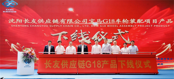 7月5日上午,瀋陽市大東區成功舉辦「瀋陽長友供應鏈有限公司寶馬G18車輪裝配項目產品下線儀式」活動。瀋陽市人民政府副市長單義、瀋陽市工業和信息化局副局長高揚、大東區委書記李剛、大東區人民政府區長王林祥,寶馬中國服務有限公司採購及質量副總裁柯豪斯,中國長安集團黨委委員、副總裁高軍,重慶長安民生物流股份有限公司黨委書記、董事長謝世康以及市區相關領導及企業代表百餘人參加了本次活動。