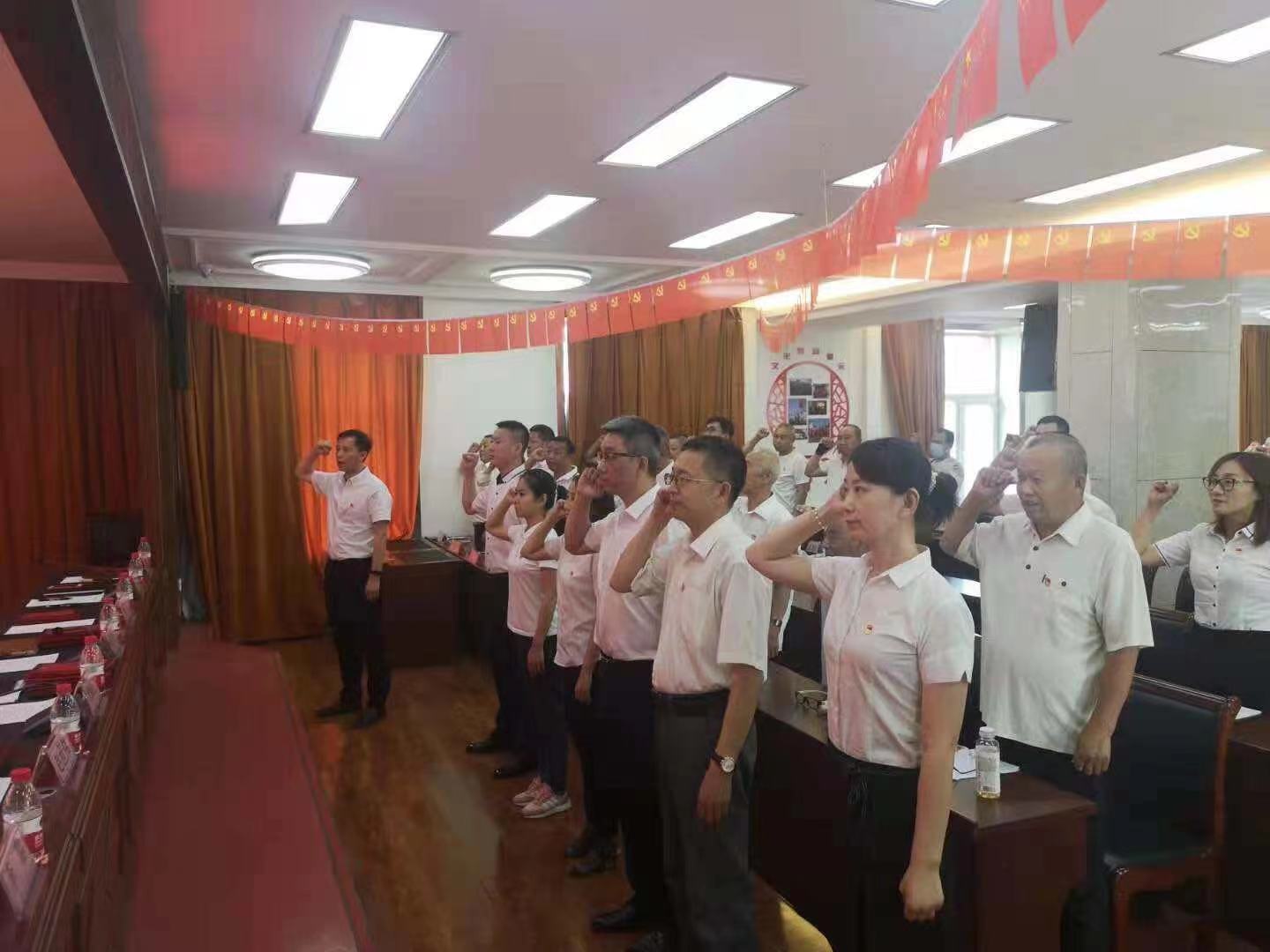 6月24日,幸福鎮機關黨支部舉行黨員重溫入黨誓詞儀式。鎮機關全體黨員、光榮在黨50年的黨員代表共30餘人參加儀式,全體黨員在鎮黨委書記代清江的帶領下,高舉右拳,全體肅立,重溫入黨誓詞,一字一句的鏗鏘誓詞,提醒黨員牢記黨員身份,不忘初心,牢記使命。
