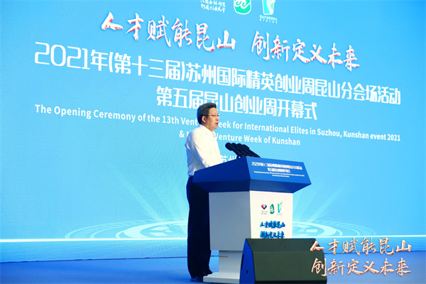 7月11日上午,2021年(第十三屆)蘇州國際精英創業周昆山分會場活動·第五屆昆山創業周在昆山國際會展中心開幕。昆山市委書記吳新明出席開幕式並希望廣大院士專家、人才精英更深入地了解昆山、走進昆山、投資昆山,與昆山深化合作交流、豐富合作內涵,共享發展機遇、共贏美好未來。