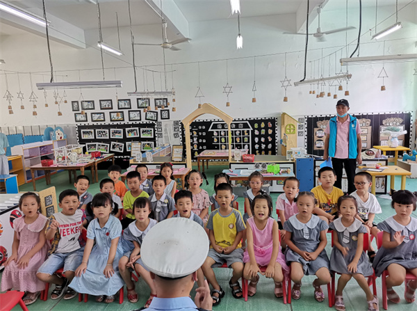 活動中,宣傳民警以交通安全出行常識、典型交通事故案例為主要內容,結合八月起騎電動自行車不佩戴安全頭盔罰200元的新規,重點落在佩戴好頭盔、系好安全帶、過馬路要走斑馬線看紅綠燈、未滿12周歲不得騎自行車上路、未滿16周歲不得駕駛電動自行車等。活動期間,宣傳民警還走進課室與同學們提問互動,提醒同學們在暑期出行過程中要提高交通安全意識,注意遵守交通規則,文明安全出行,同時要把道路交通安全知識帶回家,「小手」牽「大手」,讓家長和孩子們一起度過安全快樂的暑假。
