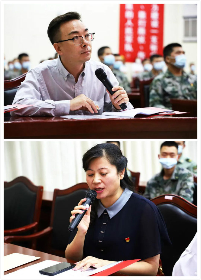 本次課程中,除了蘭州城市學院老師郭軍和丁穎擔任串講之外,現場官兵們也參與了部分篇章的文藝表演,某部排長分別在第一篇章和第二篇章朗誦了詩歌《紅船從南湖起航》和家書《這是我寫給你的最後一封信了》,用他那渾厚而滿含情感的聲音抒發着對中國共產黨的熱愛。
