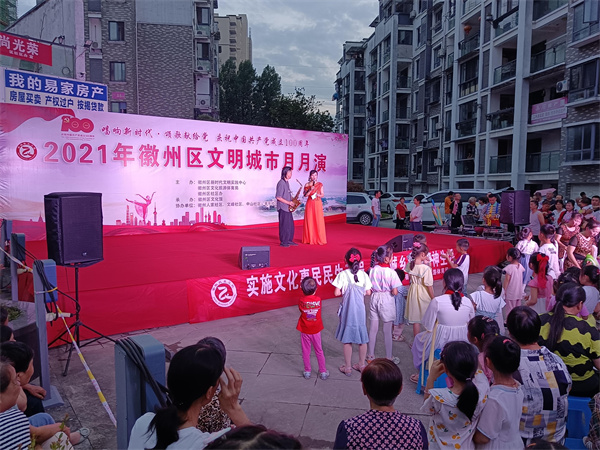 6月底,徽州區3場不同主題的文化活動在3個地方同步上演,除了在龍井居委會舉辦的2021年安徽省文化惠民民生工程徽州區“送戲進萬村”和在西溪南村舉辦的首場“我們的中國夢”——文化進萬家暨鄉村振興基層文藝演外。“2021年徽州區文明城市月月演”活動在文峰社區永華禦園上演。據悉,自2019年3月以來,徽州區結合創建全國文明城市工作主題,依託文藝輕騎兵志願隊伍,將文明意識、社會主義核心價值觀等嵌入文化活動中來,創新打造創建文明城市文化惠民“月月演”品牌,讓百姓在潛移默化中感受文明正能量,樹立健康生活的理念。