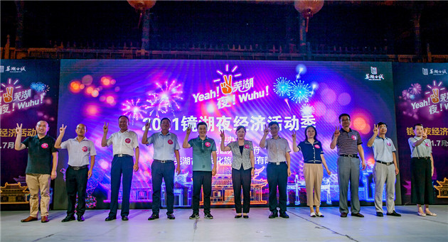 7月11日晚,「Yeah! 蕪湖!夜Wuhu!——2021鏡湖夜經濟啟動儀式」在安徽蕪湖古城舉行。蕪湖市、鏡湖區有關領導及區直相關部門等出席並見證。