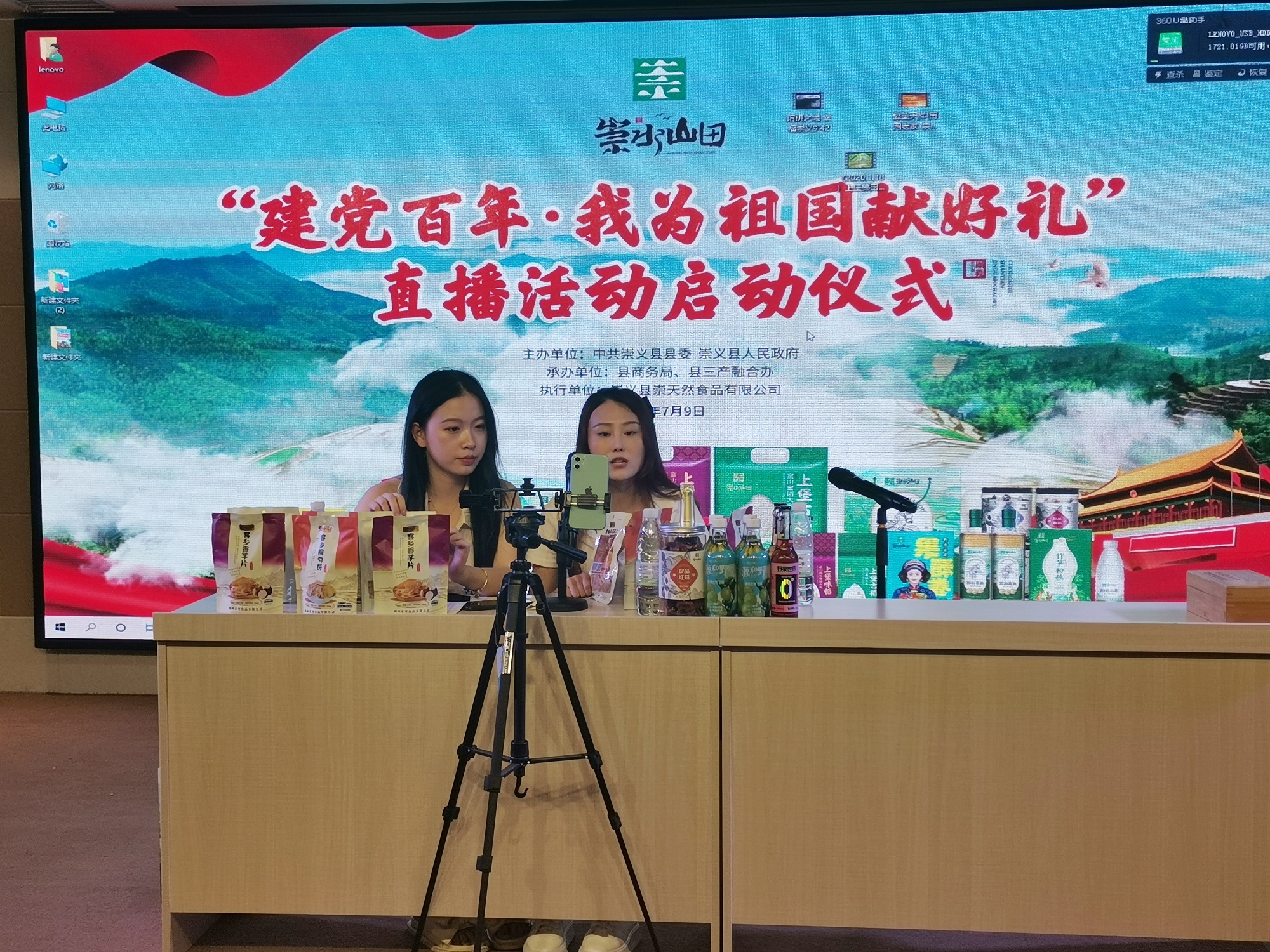 “崇水山田”生態產品年度直播帶貨活動分為“建黨百年·我為祖國獻好禮”“金秋圓夢·我為豐收節助力”“百年冬奧·我為中國隊加油”三個主題。直播活動啟動儀式由中共崇義縣縣委、崇義縣人民政府主辦,崇義縣商務局、崇義縣三產融合辦承辦,崇義縣崇天然食品有限公司執行。直播活動前,崇義縣三產融合辦等部門一一作了“崇水山田”生態產品、旅遊景區、景點及旅遊線路、休閒康養資源的推介。隨後,網紅在直播間現場推介“崇水山田”生態產品,給消費者帶來一場網絡消費盛宴。據悉,該縣希望通過直播活動,打造屬於一支崇義自己的網紅電商直播團隊,不斷為崇義特色產業發展消費引流,推動“崇水山田”區域品牌、旅遊品牌、生態產品等走出崇義,走向全國。