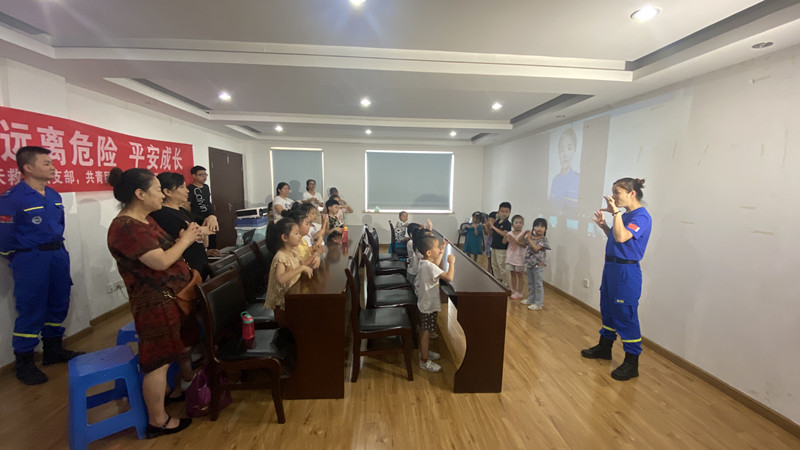 在安全教育小課堂上,“藍天救援隊”的專業救援人員,正針對屯溪區各地水域較多的情況,把當地城市和鄉村裏,不同環境中易發生的兒童溺水事故,特別是為了營救溺水同伴而發生的多人溺水事件,通過現場課的形式分析案例,體驗式的普及兒童以及家長的防溺水安全常識,讓他們遠離溺水危險。