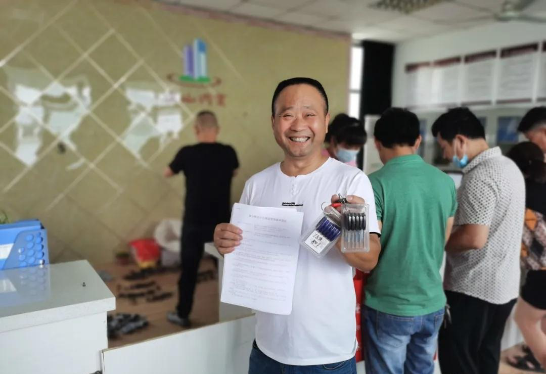 「好了,下一個!」亞父街道前進村居民郭朋朋和父親帶齊材料,配合工作人員完成了交房手續,領到了新房鑰匙。郭朋朋一家在村裡原先有一棟200多平方米的兩層小樓,拆遷後,他們一家一直在外租房。這次回遷,他家在旗山楓景三期分到了2套房子,分別是80㎡和110㎡,此前,在新港雅居小區他家還分到一套65㎡的房子。
