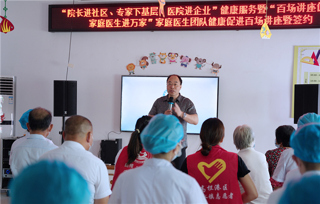 珠海市人民醫院高欄港醫院(以下簡稱:高欄港醫院)讓社區居民享受便捷的中醫藥服務,滿足居民們健康的需求, 7月13日在高欄金洲社區衛生服務站開展中醫養生保健講座義診暨三伏灸系列活動,真正把健康送給社區居民。本次活動,高欄港醫院邀請了中醫學術指導老師、河圖新中醫學派創始人郭子布教授,為社區居民開展一場中醫養生保健講座,用通俗易懂的中醫創新理論給居民講解身體症狀發出的報警語言,讓大家了解自己的身體狀況,提早預防疾病。