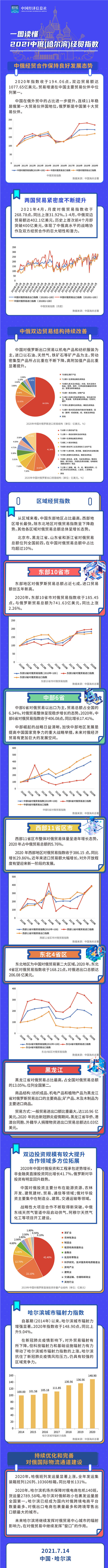 7月14日,「中俄(哈爾濱)經貿指數報告(2021)」在哈爾濱正式發佈。據「中俄(哈爾濱)經貿指數報告(2021)」顯示,2020 年,中俄貿易指數總體保持穩定態勢,達194.06點。「中俄(哈爾濱)經貿指數報告」以中俄兩國進出口貿易發展情況為切入點,通過建立可量化的指數體系,全方位、多層次地準確反映全國以及各區域對俄貿易的往來情況,科學監測雙邊貿易發展水平和趨勢。