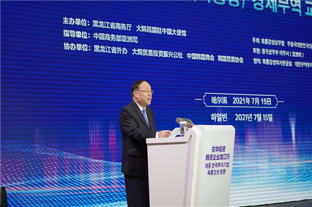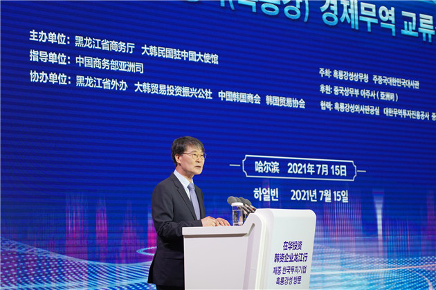 7月15日上午10時,由黑龍江省商務廳、大韓民國駐中國大使館共同主辦,中國商務部亞洲司為指導的2021中國(黑龍江)-韓國經貿交流會在哈爾濱舉行,此次交流會是「在華投資韓資企業龍江行」系列活動中的重要組成部分。此次活動有助於黑龍江省搶抓後疫情時代對韓合作先機,推動對韓經貿合作提質升級,助力黑龍江省全方位對外開放。