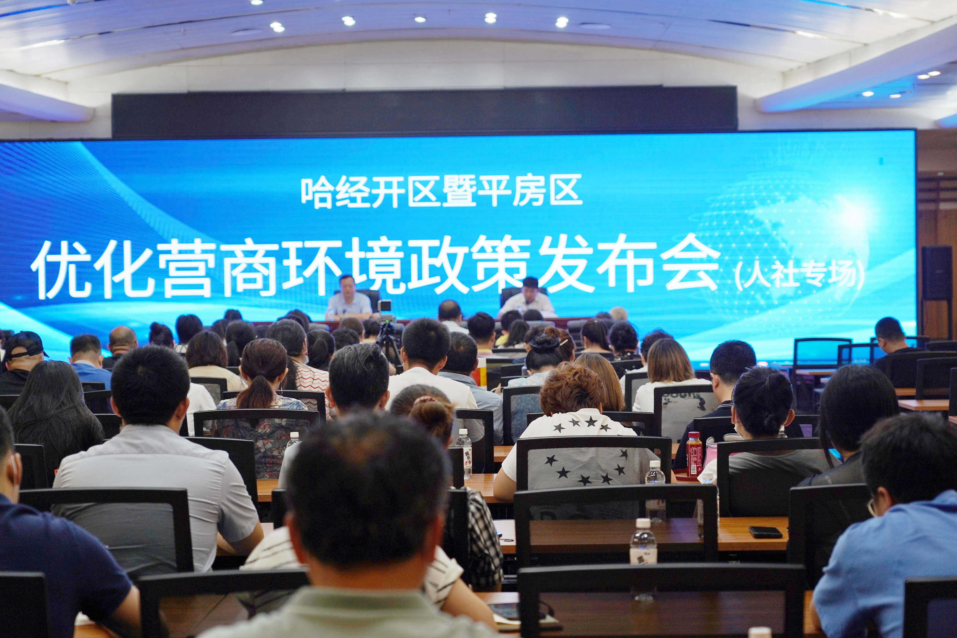 7月16日,哈經開區、平房區優化營商環境政策發佈會(人社專場)在哈經開區管委會大廈召開。此次政策宣講會重點宣傳青年就業見習和職業技能提升培訓政策,進一步提升企業政策知曉度,促進各項惠企政策落到實處,將黨史學習教育和「我為群眾辦事實」相結合,真正讓企業受「普惠」、得「實惠」,解決人社惠企政策宣傳和落實的「最後一公里」問題。