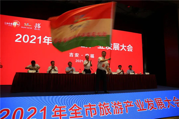 為加快推進「全景吉安 全域旅遊」建設,7月13日—15日,2021年吉安市旅遊產業發展大會在安福縣召開,現場簽約了13個重大旅遊項目,簽約資金逾百億,會上還頒發了2020年度全市旅遊產業發展先進單位獎牌,並為2022年吉安市旅遊產業發展大會承辦地吉水縣授旗。