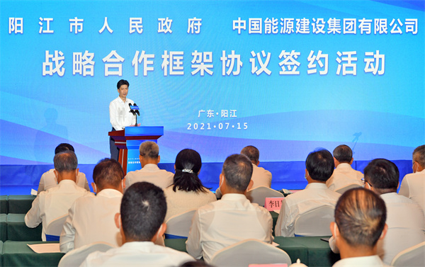 陽江市緊緊圍繞廣東省委賦予的「兩個定位」戰略要求,堅持「向海發展,工業立市」,集中精力加快打造沿海經濟帶的重要戰略支點、宜居宜業宜游的現代化濱海城市。隨着7月8日,陽江市與中國鐵建股份有限公司簽訂戰略合作框架協議,記者獲悉,7月15日,陽江市政府與中國能源建設集團有限公司簽訂戰略合作框架協議,進一步深化交流合作,陽江市與央企全方位合作按下「快進鍵」。