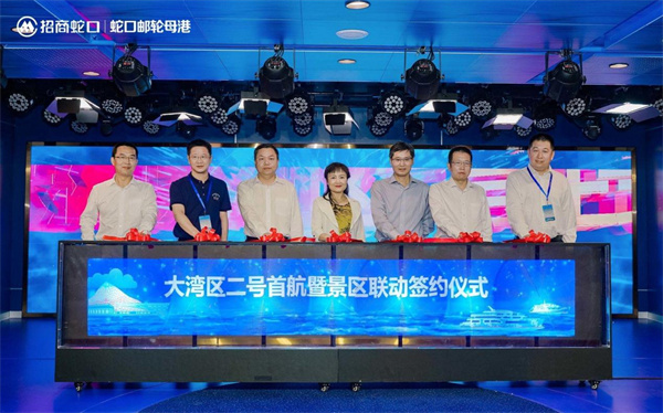 7月16日下午,由招商局蛇口工業區控股股份有限公司、深圳市文化廣電旅遊體育局和深圳市交通運輸局聯合主辦的大灣區二號首航暨景區聯動簽約儀式在蛇口郵輪母港舉行,深圳市文化廣電旅遊體育局二級巡視員楊永群,前海管理局副局長袁富勇,招商局工業集團有限公司總經理胡賢甫,副總經理吳四川,深圳市交通運輸局,蛇口海事局等相關單位,招商局郵輪有限公司總經理、深圳招商蛇口國際郵輪母港有限公司董事長吳煒,招商局郵輪有限公司副總經理、深圳招商蛇口國際郵輪母港有限公司總經理呂如福出席此次活動。