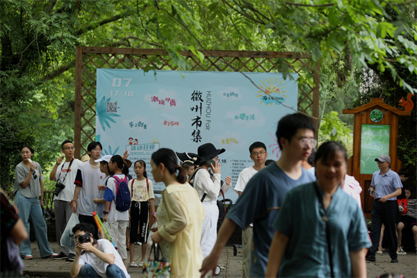 7月17日,安徽黃山市徽州區西溪南徽州市集在西溪南村楓楊林開市,來自杭州、福州、合肥及本地近60個攤主,涵蓋非遺、土產、文創等眾多高顏值個性好物精彩亮相,吸引了不少遊客和本地市民觀光。