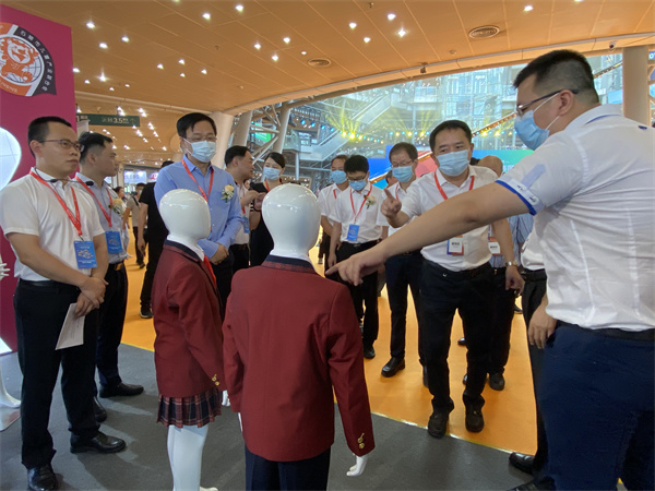 本屆展會以「健康引領、美麗校園」為主題,展出中小學校園服飾、幼兒園園服、校服面輔料、校服配飾等多品類產品。展會現場,除琳琅滿目的參展產品外,不乏可以看到校博會的「老面孔」。據上尚亞洲服裝設計(廣州)有限公司工作人員郭栩言介紹,此次是他們公司第二次來參加校博會,相對於線上的銷售模式,通過展會對接客戶,能更直接了解客戶需求,以便第一時間跟進修改方案。