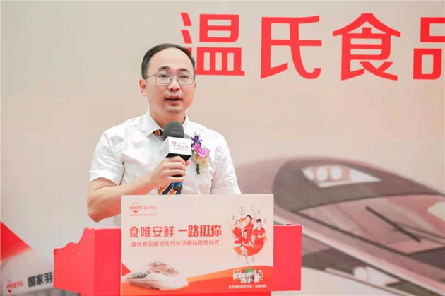 在儀式現場,溫氏股份常務副總裁黎少松接受媒體採訪時表示,這次選擇在長沙南站發車,也正是想藉助高鐵傳播的速度與廣度,將溫氏食品「民食為天,食唯安鮮」的品牌價值定位傳遞給華南地區更多的消費者。下一步,公司將聚焦「溫氏天露」系列的品牌產品打造,比如「天露烏骨雞」等。讓消費者通過產品更進一步了解溫氏食品的吸引力,為各業務的市場開拓進行賦能。