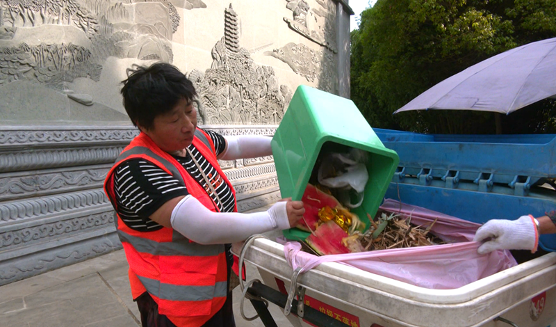 下午4時,陽光依然炙熱,地面被曬得滾燙,負責清掃新安江延伸段照壁景區的環衛工人們正在烈日下對岸邊和景區內的枯葉和垃圾進行清掃。已經從事環衛工作10餘年的孫美琴阿姨告訴記者,除了酷暑天氣令人難受,垃圾量也要比平時多很多,蔬菜、瓜果皮堆滿了垃圾桶,需要不停地來回清理、保潔。“現在天很熱,氣溫很高,每天的衣服都是濕的,辛苦是肯定辛苦的。”但是孫阿姨表示看到城市的環境衛生越來越好,辛苦一點都是值得的,“但是因為我們的勞動讓城市變乾淨了,大家生活的環境好了,我們辛苦都是值得的。”