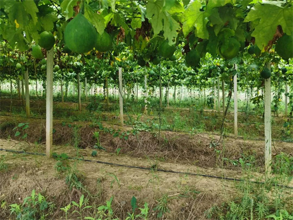 「今年,在當地政府的支持下,為我們300畝瓜蔞田裡安裝了高效節能灌溉設備,真是解決了瓜蔞基地水利設施的一大難題。2019年因為乾旱,離水源較遠的田地不能及時得到有效灌溉,導致瓜苗大面積枯死,高效節能灌溉採用滴灌技術,通過源源不斷的補水供給緩解了人工灌溉的壓力,也極大的減少了種植成本。」基地種植大戶胡菊英介紹道。