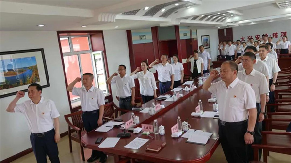 黨課上,大家首先聆聽了塔河縣第二中學張穎老師的詩朗誦《永遠跟黨走》,少數民族黨員代表、「兩優一先」代表圍繞習近平總書記「七一講話精神」互動交流發言,最後,全體與會人員舉起右拳,共唱歌曲《我宣誓》,深刻感召初心使命,向黨明志,向人民致敬。