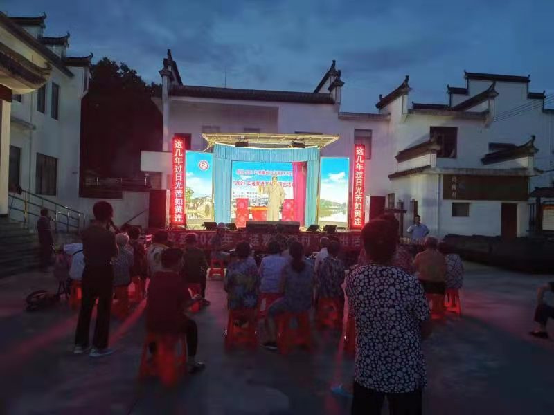 7月21日,黟縣“送戲進萬村”文化惠民演出活動走進漁亭鎮團結村,為老百姓送上一場精彩的文化盛宴。在村文化廣場的舞臺上,一臺臺黃梅戲引人入勝,一段段精美唱腔,美妙動聽。臺上表演惟妙惟肖,台下笑聲掌聲陣陣,村民們不時拿出手機記錄精彩瞬間。“節目內容很豐富,聽聽故事,看看戲,還能多多瞭解黨史,真的是一舉多得啊。”村民李大爺樂呵呵的說到。