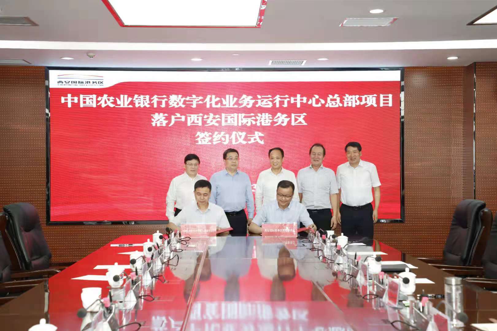 7月23日,西安國際港務區管委會與中國農業銀行、中國石化銷售股份有限公司西北分公司舉行簽約儀式。中國農業銀行數碼化業務運行總部和中石化西北總部正式落戶中歐班列(西安)集結中心中央商務區。