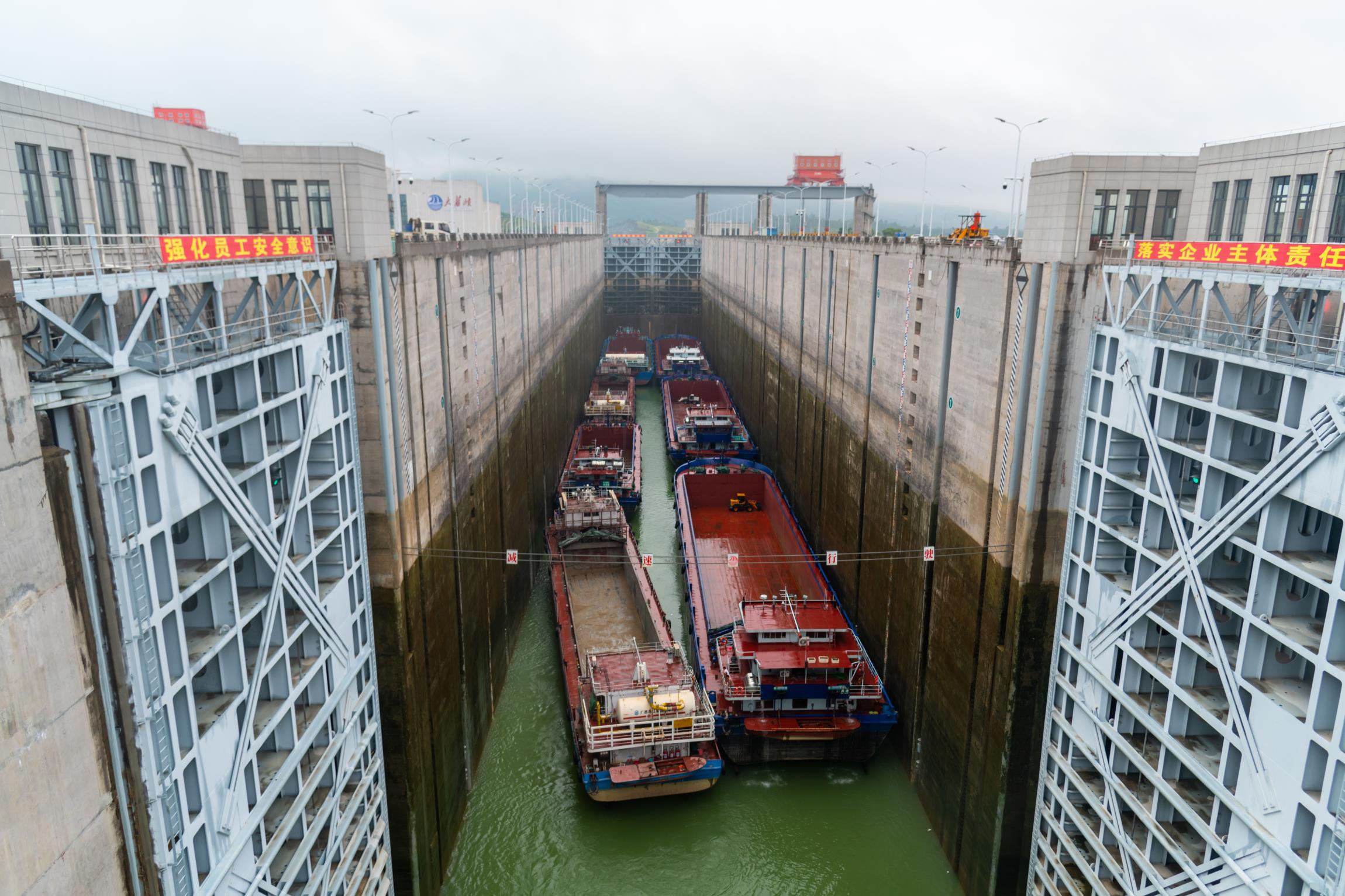 李藝表示,大藤峽水利樞紐工程攻克了大體積混凝土溫控、岩溶湧水、「天下第一門」製造安裝、國內最大的軸流轉槳式水輪發電機組安裝等技術難題,共配備8台國內製造難度最大、推力負荷第一的軸流轉漿式水輪發電機組,年發電量可達60.55億度。大藤峽水利樞紐船閘是國內水頭最高、規模最大的單級船閘,比三峽閘門高出9米,試通航後,黔江通航規模將提高至內河航運最高等級3000噸級,單次過閘時間最快僅需1小時。截至目前,大藤峽船閘累計過閘船舶超2萬艘次,核載量超4千萬噸,帶動超過20億元產業的高質量發展。