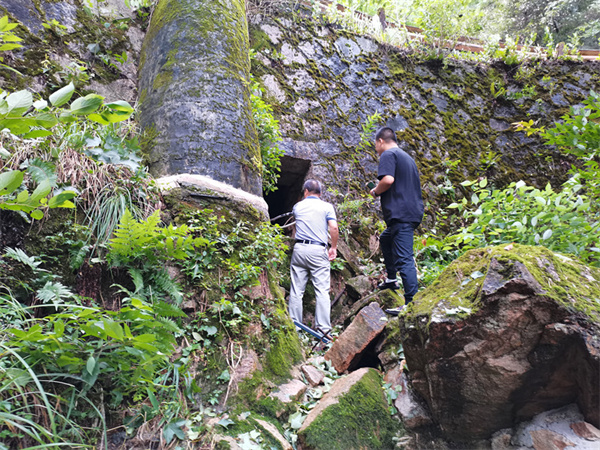 園林部門對黑虎松基部捕設麻袋,防止雨水沖刷