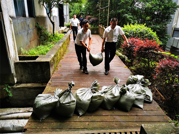 景區園林部門備足沙袋、鐵鍬、安全繩、油鋸、照明燈等物資