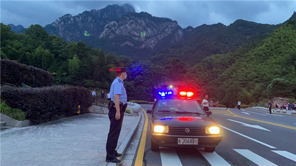 7月23日起,景區內各派出所加強遊步道沿線、公路沿線、地質災害隱患點、水庫等部位巡查檢查,最大限度杜絕安全隱患,防止災害和次生災害發生;走訪轄區單位、工地工棚,提醒單位職工落實防風防汛措施;加大重要路段客流管控力度,引導遊客合理安排出行,於颱風雨水天氣前夕快速下山。在湯口地區,景區公安屯警於面,疊加巡邏、定點執勤等方式,加強隱患排查、治安管理、旅遊警務服務、進山遊客勸導等工作力度,全力守護轄區公共安全。交警部門加強轄區道路巡查管理,會同相關部門對交通設施、路邊植被、看板等開展全覆蓋檢查,保障道路交通安全有序。指揮中心加強公共安全視頻巡查,做好突發事件指揮調度準備。警務保障處強化應急物資維護保養,為防汛工作提供完備保障。