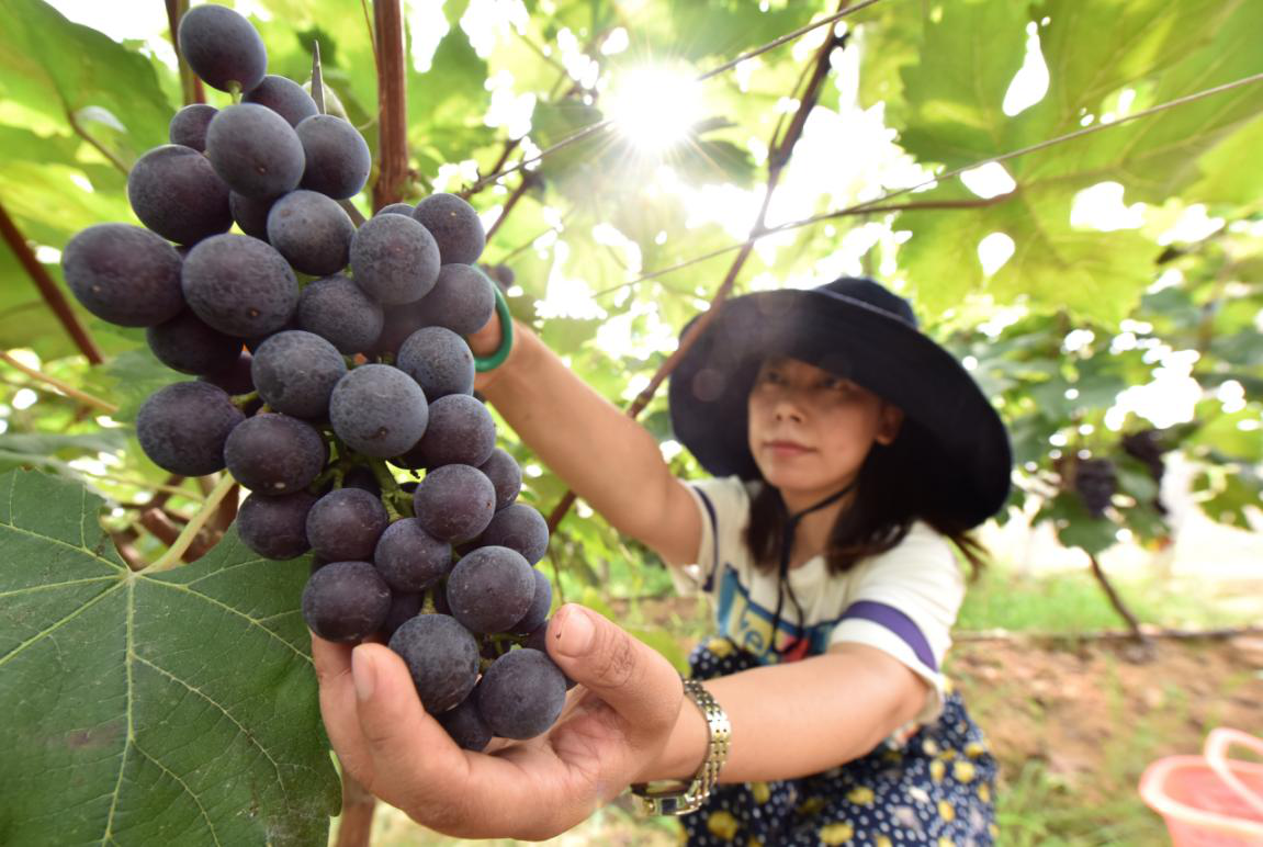 據悉,該基地佔地面積60畝,育有月光、寶育、康又香等3個新品種,其口感有着「野葡萄」的酸甜本味,一上市便受到消費者青睞。