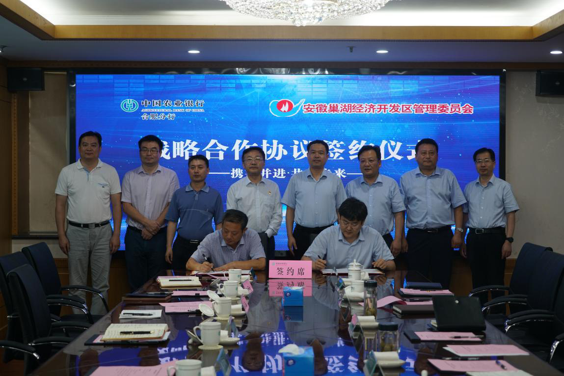 在建黨百年之際,為提升金融科技服務能力和金融服務品質,降低駐區企業融資成本,扶持平台內優質企業成長,結合開發區產業新的發展規劃,聚焦新能源(汽車)、新材料、新醫療(大健康)、新文旅等主導產業,助推開發區「四新」產業發展,助力開發區經濟騰飛。2021年7月23日下午,安徽巢湖經開區與農行合肥分行簽署戰略合作協議。安巢經區管委會主任黃衛東,副主任王時年、胡亞斌,農行合肥分行行長史曉民、副行長陳輝等領導參加簽約儀式。