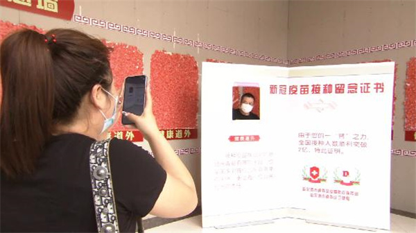 接種時保證秩序,接種後做好服務。在留觀區的居民身上都貼着一個心形粘貼,上面準確記錄着接種時間和離開時間。留觀區不僅準備了食品、飲用水,還專門設置了接種攝影牆,市民可以在此合影留念,增強接種的「溫馨感」,使接種過程作既有「溫度」又有「儀式感」。